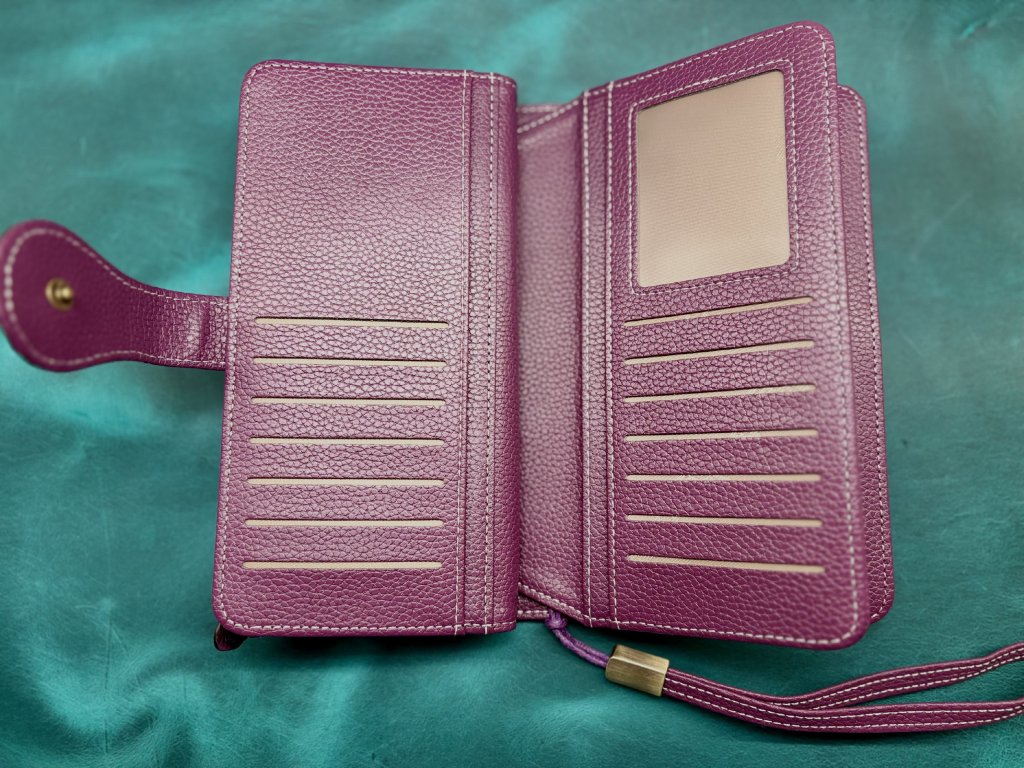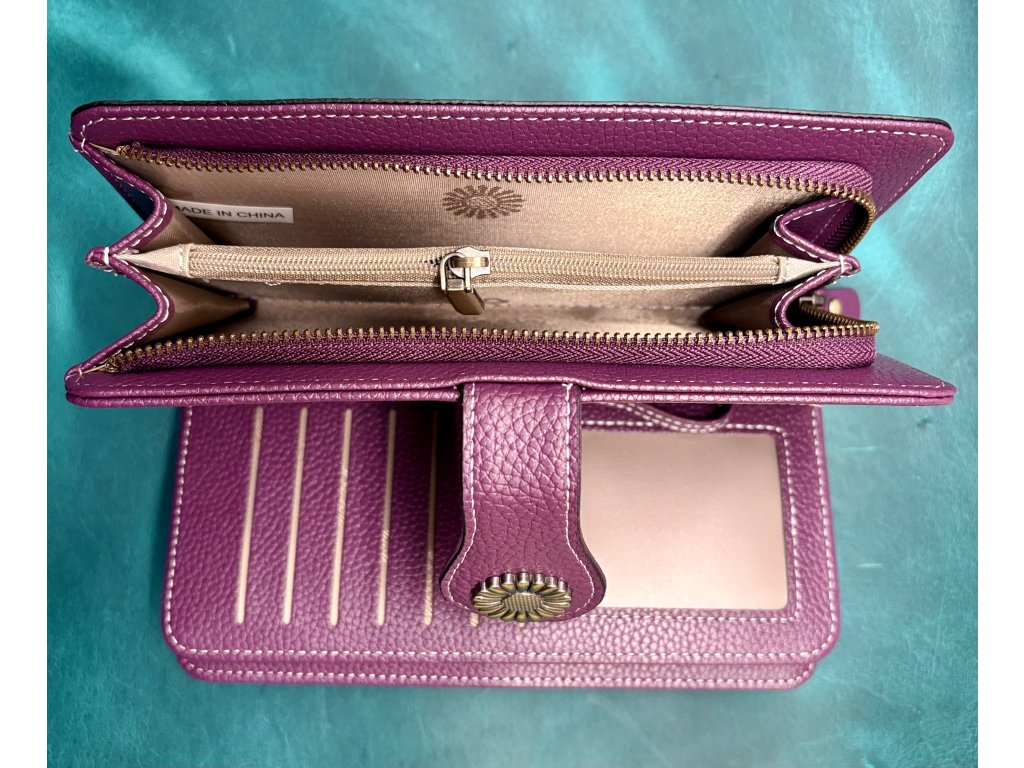 Dámská peněženka v jemném fialovém odstínu zaujme svým nadčasovým designem a praktickým vnitřním členěním. Nabízí dostatek prostoru pro karty, hotovost i mince a zároveň zůstává kompaktní a elegantní.