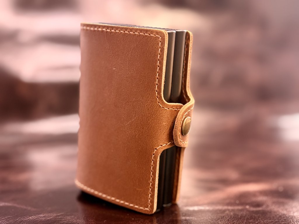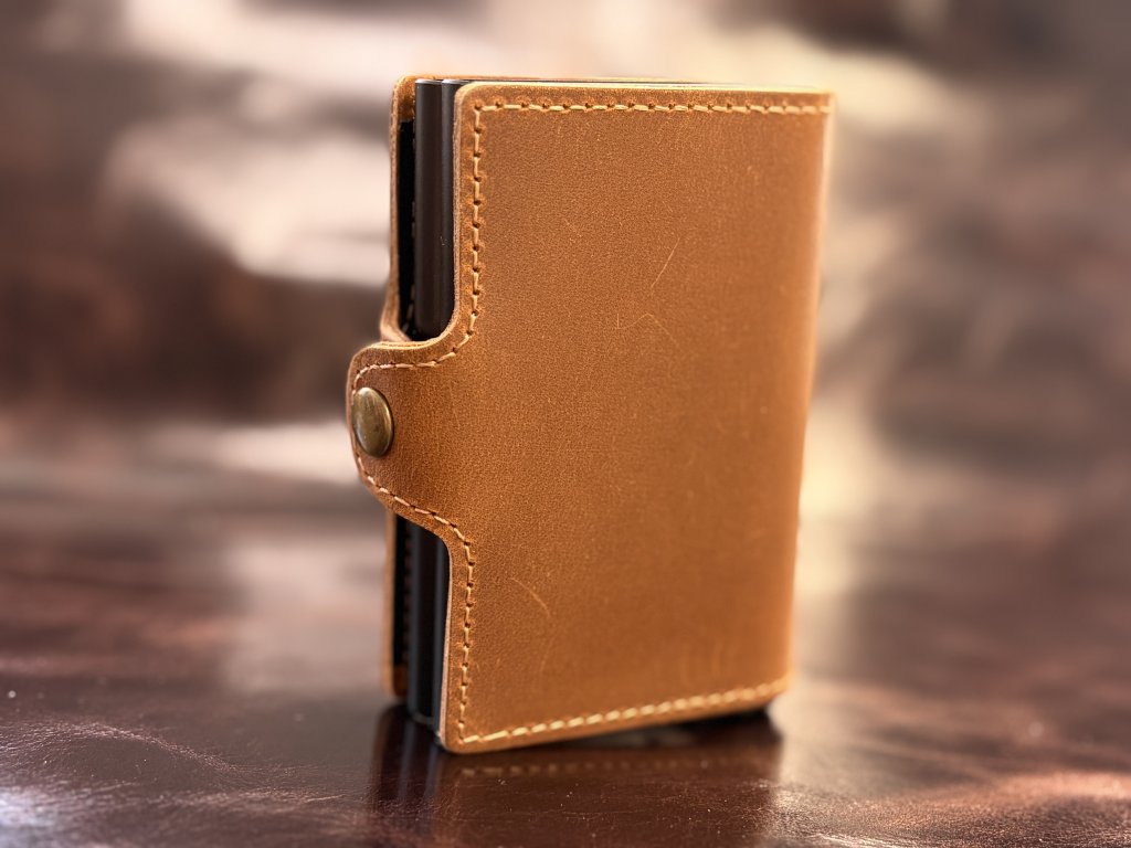 Hliníkové šasi s RFID ochranou pomáhá chránit platební karty proti nechtěnému bezkontaktnímu načtení. Světle hnědé provedení působí elegantně a hodí se pro každodenní nošení.